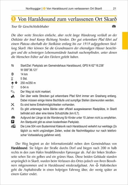 Die schroffen, mitten im Nordatlantik liegenden Färöer bestehen aus 18 Inseln und gelten als Geheimtipp für Naturliebhaber und Wanderfreunde. Auf uralten Wegen wandern Sie durch das Reich der Vögel und Schafe und genießen atemberaubende Ausblicke über markante Berggipfel, steile Grashänge und pittoreske Dörfer. Dieses Buch beschreibt 27 abwechslungsreiche Routen, von einfachen Kurztouren bis zu anspruchsvollen Bergbesteigungen. Karten, Höhenprofile und GPS-Tracks erleichtern die Orientierung vor Ort. Allgemeine Infos zu Themen wie Anreise und Reisezeit, Hinweise zu Wegbeschaffenheit und Markierungen sowie Tipps für Varianten machen den Wanderführer zu einem unentbehrlichen Wegbegleiter.