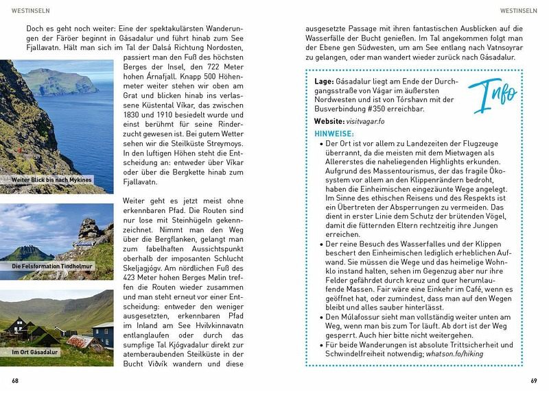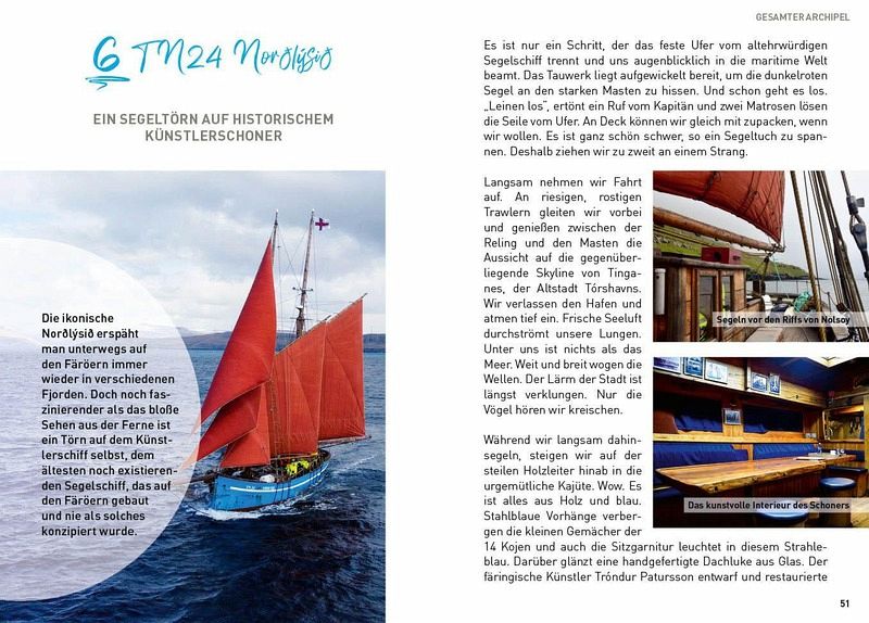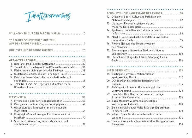 Im Vogelparadies auf den zerklüfteten Felsklippen stehen und weit über das Nordmeer blicken: Das sind die ungezähmten, wilden Färöer Inseln. Ein Naturparadies, wo das Wetter pausenlos neue Lichtspiele auf die Fjordlandschaft zaubert, schmale Bergstraßen und -tunnel zu entlegenen Dörfern führen und die Moderne die Tradition umarmt. Auf den Schafsinseln finden Outdoor-Aktive, die gern wandern, angeln, surfen, segeln, Rad fahren und fotografieren ihr ganz persönliches Abenteuer. Auch Modefans kommen im Land des Stricks auf ihre Kosten. Neben den bekannten Sehenswürdigkeiten wie dem Kallur Lighthouse, Saksun und der Vogelinsel Mykines laden eine Menge kulturelle Höhepunkte wie das G! Festival, Kunstgalerien und Museen zum Feiern und Verweilen ein. REISEMOMENTE Färöer Inseln stellt bekannte und weniger bekannte Mikroabenteuer auf dem nordatlantischen Archipel vor, von Familienerlebnissen über Achtsamkeitsmomente, aussichtsreiche Tageswanderungen, Instagram-Hotspots für Sonnenuntergänge, kulinarische Genüsse bis zu Bootstouren und nordischer Hochkultur: ein authentischer Urlaub kann beginnen.