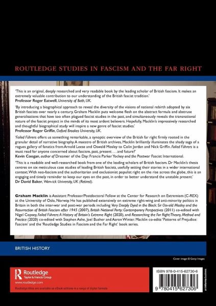 'Failed Führers offers us something remarkable, a synoptic overview of the British far right firmly rooted in the granular detail of narrative biography. A maestro of British archives, Macklin brilliantly illuminates the shady saga of a rogues gallery of fanatics from Arnold Leese and Oswald Mosley to Colin Jordan and Nick Griffin. Failed Führers is a must read for anyone concerned about fascism, past, present, . . . and future?' - Kevin Coogan, author of Dreamer of the Day: Francis Parker Yockey and the Postwar Fascist International