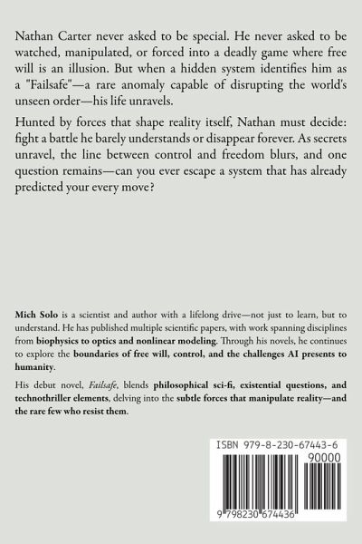 Mich Sol is a scientist and author with a lifelong drive-not just to learn, but to understand. He has published multiple scientific papers, with work spanning disciplines from biophysics to optics and nonlinear modeling. After retiring as Chief Technology Officer of a Silicon Valley startup, he continues to design complex nonlinear modeling systems while exploring, through his novels, the boundaries of free will, control, and the challenges AI presents to humanity. His debut novel, Failsafe, of the Failsafe series blends philosophical sci-fi, existential questions, and technothriller elements, delving into the subtle forces that manipulate reality-and the rare few who resist them.