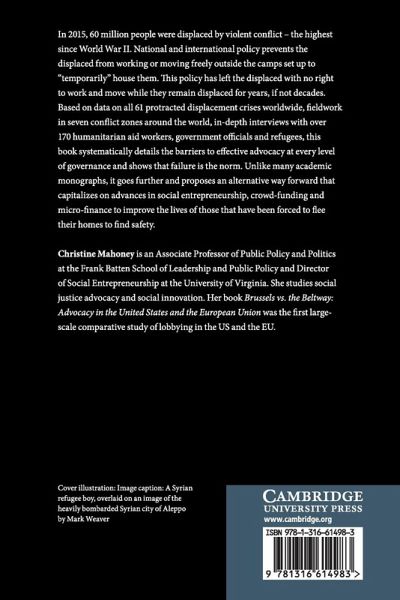 In 2015, sixty million people were displaced by violent conflict globally - the highest since World War II. National and international policy prevents the displaced from working or moving freely outside the camps set up to 'temporarily' house them. This policy has left the displaced with no right to work and move while they remain displaced for years, if not decades. Based on data on all 61 protracted displacement crises worldwide, fieldwork in seven conflict zones around the world, and in-depth interviews with over 170 humanitarian aid workers, government officials and refugees, this book systematically details the barriers to effective advocacy at every level of governance and shows that failure is the norm. Unlike many academic monographs, it goes further and proposes an alternative way forward that capitalizes on social entrepreneurship, crowd-funding and micro-finance to improve the lives of those that have been forced to flee their homes to find safety.