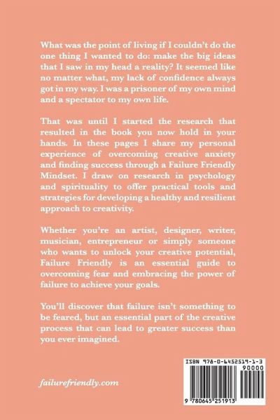 What was the point of living if I couldn't do the one thing I wanted to do: make the big ideas that I saw in my head a reality? It seemed like no matter what, my lack of confidence always got in my way. I was a prisoner of my own mind and a spectator to my own life. That was until I started the research that resulted in the book you now hold in your hands. In these pages I share my personal experience of overcoming creative anxiety and finding success through a Failure Friendly Mindset. I draw on research in psychology and spirituality to offer practical tools and strategies for developing a healthy and resilient approach to creativity. Whether you're an artist, designer, writer, musician, entrepreneur or simply someone who wants to unlock your creative potential, Failure Friendly is an essential guide to overcoming fear and embracing the power of failure to achieve your goals. You'll discover that failure isn't something to be feared, but an essential part of the creative process that can lead to greater success than you ever imagined.