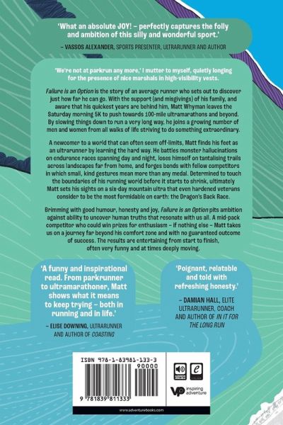Failure is an Option is the story of an average runner who sets out to discover just how far he can go. Matt Whyman leaves behind the Saturday morning 5K to push towards 100-mile ultramarathons and beyond. The results are entertaining from start to finish, often very funny and at times deeply moving.
