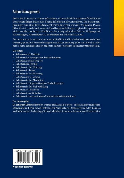 Zur Bedeutung des Scheiterns - eine Einführung.- Krisen als Chance? Erfahrungen aus psychotherapeutischer Arbeit.- Sportpsychologische Bedeutung von Fehlschlägen im Leistungssport.- Der kognitionspsychologische Einfluss begrenzter Rationalität auf die Güte unternehmerischer Entscheidungsprozesse.- Fehlschläge in Planung und Management.- Beratungspsychologische Aspekte der Vermeidung des Scheiterns von Changeprozessen.