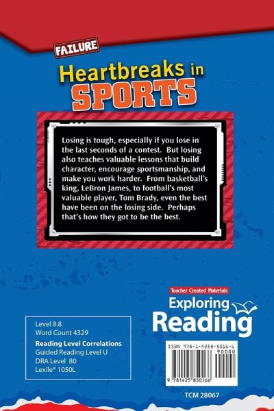 Although losing a sports match is never easy, losing teaches players valuable lessons. These lessons build sportsmanship and character, and challenge players to try even harder. At the end of the day, it does not matter whether you win or lose so long as you try your best. Read the inspirational stories of historic wins and losses from sports history with this full-color informational text that examines sportsmanship! Packed with fun facts, fascinating sidebars, and featuring TIME© content and images, this nonfiction book has text features such as a glossary, an index, and a table of contents to engage students in reading as they build their comprehension, vocabulary, and reading skills. The Reader's Guide and extended Try It! activity increase understanding of the material, and develop higher-order thinking. Check It Out! offers print and online resources for additional reading. Keep students reading from cover to cover with this captivating text!