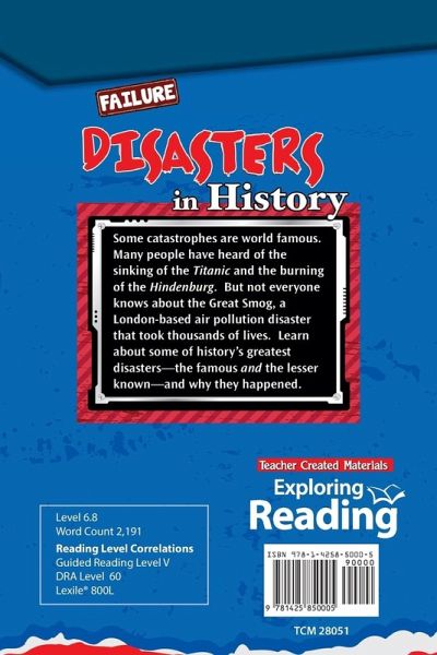 This informational text is packed with facts and sidebars about historical and modern-day disasters such as the Space Shuttle Challenger, the Great Smog of London, the Pacific Garbage Patch, the Library of Alexandria, Chernobyl, and more. Featuring TIME© content and images, the high-interest content will engage students in reading as they build their comprehension, vocabulary, and reading skills. Text features, a Reader's Guide, and the extended Try It! activity increase understanding of the material, and develop higher-order thinking. Check It Out! offers print and online resources for additional reading. Keep students reading from cover to cover with this captivating text!