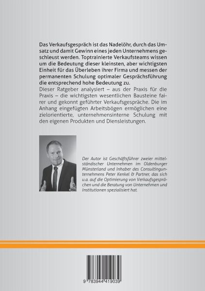 Das Verkaufsgespräch ist das Nadelöhr, durch das Umsatz und Gewinn eines jeden Unternehmens geschleust werden. Toptrainierte Verkaufsteams wissen um die Bedeutung dieser kleinsten, aber wichtigsten Einheit für das Überleben ihrer Firma und messen der permanenten Schulung optimaler Gesprächsführung die entsprechend hohe Bedeutung zu. Dieser Ratgeber analysiert - aus der Praxis für die Praxis - die wichtigsten wesentlichen Bausteine fairer und gekonnt geführter Verkaufsgespräche. Die im Anhang eingefügten Arbeitsbögen ermöglichen eine zielorientierte, unternehmensinterne Schulung mit den eigenen Produkten und Dienstleistungen.