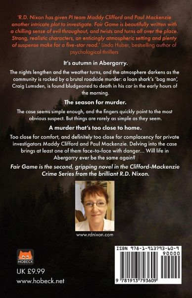 It's autumn in Abergarry. The nights lengthen, the weather turns and the atmosphere darkens as the community is rocked by a brutal roadside murder: a loan shark's 'bag man', Craig Lumsden, is found bludgeoned to death in his car in the early hours of the morning. The season for murder. The case seems simple enough, and the fingers quickly point to the most obvious suspect. But things are rarely as simple as they seem...A murder that's too close to home. Too close for comfort and definitely too close for complacency for private investigators Maddy Clifford and Paul Mackenzie. Delving into the case brings at least one of them face-to-face with danger... Will life in Abergarry ever be the same again?