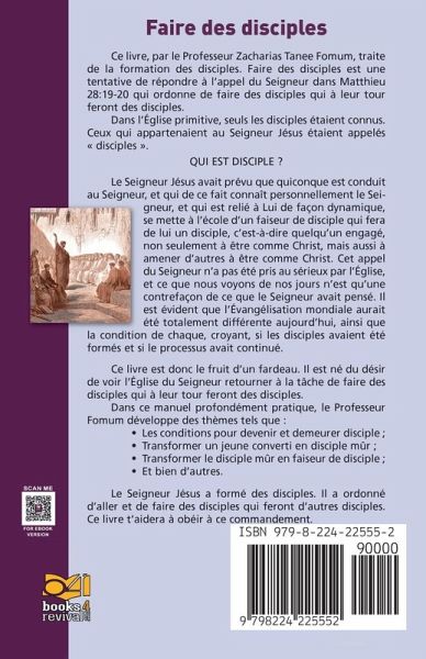 Il s'agit finalement du travail à accomplir pour faire d'un repenti, un converti, d'un converti, un jeune disciple, le conduire à la maturité et faire de lui un faiseur de disciples. Ce livre, d'une importance capitale, est présenté par l'auteur comme ''Une tentative de pourvoir aux besoins de l'appel du Seigneur à faire des disciples qui feront des disciples, qui feront des disciples et...'' Il s'agit d'un exposé des révélations, des doctrines, des méthodes et des principes sur la formation des disciples, en vue d'aider quiconque à expérimenter la vie de disciple et, partant, à conduire d'autres à grandir de manière à devenir des ouvriers actifs dans la formation d'autres disciples. C'est un livre à lire et à recommander à tout serviteur de Dieu conscient de la glorieuse mission que le Seigneur Jésus Christ a confiée à son église: ''Allez, faites de toutes les nations des disciples, ...'' Vivement recommandé au corps de Christ.