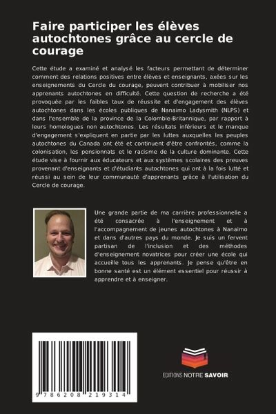 Cette étude a examiné et analysé les facteurs permettant de déterminer comment des relations positives entre élèves et enseignants, axées sur les enseignements du Cercle du courage, peuvent contribuer à mobiliser nos apprenants autochtones en difficulté. Cette question de recherche a été provoquée par les faibles taux de réussite et d'engagement des élèves autochtones dans les écoles publiques de Nanaimo Ladysmith (NLPS) et dans l'ensemble de la province de la Colombie-Britannique, par rapport à leurs homologues non autochtones. Les résultats inférieurs et le manque d'engagement s'expliquent en partie par les luttes auxquelles les peuples autochtones du Canada ont été et continuent d'être confrontés, comme la colonisation, les pensionnats et le racisme de la culture dominante. Cette étude vise à fournir aux éducateurs et aux systèmes scolaires des preuves provenant d'enseignants et d'étudiants autochtones qui ont à la fois lutté et réussi au sein de leur communauté d'apprenants grâce à l'utilisation du Cercle de courage.