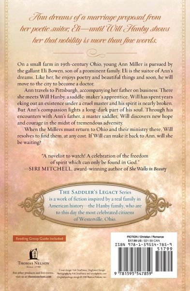 Ann dreams of a marriage proposal from her poetic suitor, Eli-until Will Hanby shows her that nobility is more than fine words. On a small farm in 19th-century Ohio, young Ann Miller is pursued by the gallant Eli Bowen, son of a prominent family. Eli is the suitor of Ann's dreams. Like her, he enjoys poetry and beautiful things and soon, he will move to the city to become a doctor. Ann travels to Pittsburgh, accompanying her father on business. There she meets Will Hanby, a saddle-maker's apprentice. Will has spent years eking out an existence under a cruel master and his spirit is nearly broken. But Ann's compassion lights a long-dark part of his soul. Through his encounters with Ann's father, a master saddler, Will discovers new hope and courage in the midst of tremendous adversity. When the Millers must return to Ohio and their ministry there, Will resolves to find them, at any cost. If Will can make it back to Ann, will she be waiting?