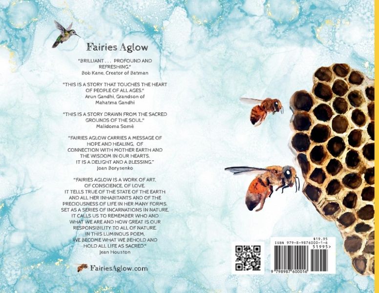 Fairies Aglow: A Modern Fairytale of Ancient Wisdom Author: Ginger Swanson Illustrator: Chiffon Lark Fairies Aglow is a delightful and inspirational poetic picture story that takes its reader on a journey through our natural world. As we travel through the imaginal states of consciousness of Earth's beings-from a Human to a Bee, to a Fish, Rock, Bear, and Tree, to a Fairy, and then a Frog-we experience the plight of these beings and become one with them and nature. We traverse through Earth's natural environment and encounter storms of sadness on our way to the discovery of wisdom and joy. We feel love and peace from an Old Folken Tree and find humor in the ribbit of a funny Frog! Fairies Aglow is depth filled story with lessons on being kind to Earth all her beings. Fairies Aglow is both timely and timeless. It is truly a classic fairytale! Praises for Fairies Aglow: "BRILLIANT . . . PROFOUND AND REFRESHING." Bob Kane, Creator of Batman "THIS IS A STORY THAT TOUCHES THE HEART OF PEOPLE OF ALL AGES." Arun Gandhi, Grandson of Mahatma Gandhi "THIS IS A STORY DRAWN FROM THE SACRED GROUNDS OF THE SOUL." Malidoma Somé "FAIRIES AGLOW CARRIES A MESSAGE OF HOPE AND HEALING, OF CONNECTION WITH MOTHER EARTH AND THE WISDOM IN OUR HEARTS. IT IS A DELIGHT AND A BLESSING, A HOPE AND A HEALING." Joan Borysenko "FAIRIES AGLOW IS A WORK OF ART, OF CONSCIENCE, OF LOVE. IT TELLS TRUE OF THE STATE OF THE EARTH AND ALL HER INHABITANTS AND OF THE PRECIOUSNESS OF LIFE IN HER MANY FORMS. SET AS A SERIES OF INCARNATIONS IN NATURE, IT CALLS US TO REMEMBER WHO AND WHAT WE ARE AND HOW GREAT IS OUR RESPONSIBILITY TO ALL OF NATURE. IN THIS LUMINOUS POEM, WE BECOME WHAT WE BEHOLD AND HOLD ALL LIFE AS SACRED." Jean Houston Keywords: Environment; Children; Fairy Tales;Fairies; Faerie Tales; Faeries; Bees; Fish; Rocks; Trees; Frogs; Butterflies; Dragonflies; Hummingbirds; Kindness; Kind; Love; Earth; Art; Love; Nature; StoryTime; Dreams; Gandhi;King; Prince; Houston; Batman; Kane; Disney; Mackesy;