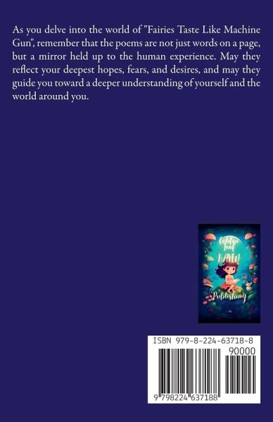 As you delve into the world of "Fairies Taste Like Machine Gun", remember that the poems are not just words on a page, but a mirror held up to the human experience. May they reflect your deepest hopes, fears, and desires, and may they guide you toward a deeper understanding of yourself and the world around you.
