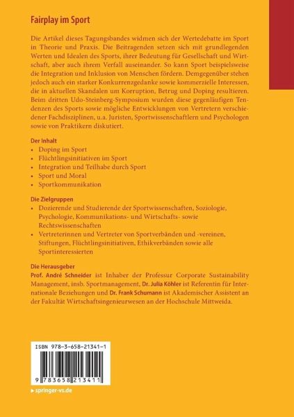 Die Artikel dieses Tagungsbandes widmen sich der Wertedebatte im Sport in Theorie und Praxis. Die Beitragenden setzen sich mit grundlegenden Werten und Idealen des Sports, ihrer Bedeutung für Gesellschaft und Wirtschaft, aber auch ihrem Verfall auseinander. So kann Sport beispielsweise die Integration und Inklusion von Menschen fördern. Demgegenüber stehen jedoch auch ein starker Konkurrenzgedanke sowie kommerzielle Interessen, die in aktuellen Skandalen um Korruption, Betrug und Doping resultieren. Beim dritten Udo-Steinberg-Symposium wurden diese gegenläufigen Tendenzen des Sports sowie mögliche Entwicklungen von Vertretern verschiedener Fachdisziplinen, u.a. Juristen, Sportwissenschaftlern und Psychologen sowie von Praktikern diskutiert.