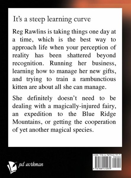 Don't take a pixie on a road trip. Reg Rawlins is taking things one day at a time, which is the best way to approach life when your perception of reality has been shattered beyond recognition. Running her business, learning how to manage her new gifts, and trying to train a rambunctious kitten are about all she can manage. She definitely doesn't need to be dealing with a magically-injured fairy, an expedition to the Blue Ridge Mountains, or getting the cooperation of yet another magical species. This edition has been formatted with Verdana 18 pt, 1.5 line spacing, and double-spaced paragraphs in accordance with the recommendations of the American Council for the Blind.