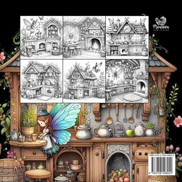 Feen Küchen Malbuch für ErwachseneZauberhafte Feen Küchen und Küchen-Feen mit süßen vintage Landhaus Küchen. 54 SeitenFeen werkeln in ihren kleinen Küchenvintage Küchen mit alten Öfen und FeuerstellenKräuter, Pötte und Kochzubehörein Malbuch zum träumen und relaxenDas Malbuch ist ein tolles Geschenk für alle Fantasy, Feen Fans und Köchinnen.