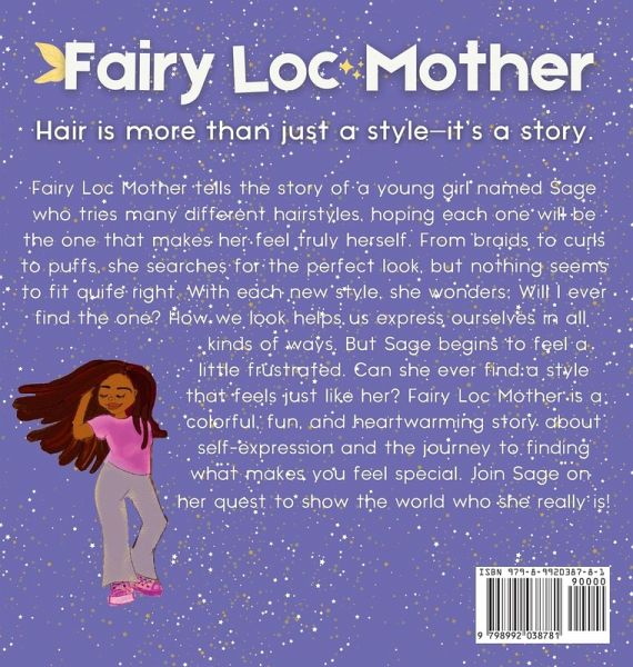 Fairy Loc Mother tells the story of a young girl named Sage who tries many different hairstyles, hoping each one will be the one that makes her feel truly herself. From braids to curls to puffs, she searches for the perfect look, but nothing seems to fit quite right. With each new style, she wonders: Will I ever find the one? How we look helps us express ourselves in all kinds of ways. But Sage begins to feel a little frustrated. Can she ever find a style that feels just like her? Fairy Loc Mother is a colorful, fun, and heartwarming story about self-expression and the journey to finding what makes you feel special. Join Sage on her quest to show the world who she really is.
