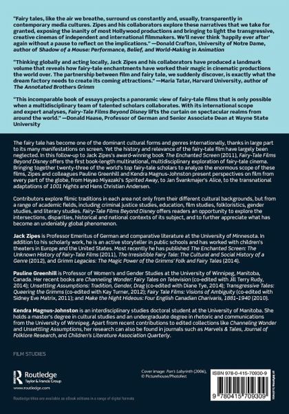 The fairy tale has become one of the dominant cultural forms and genres internationally, thanks in large part to its many manifestations on screen. Yet the history and relevance of the fairy-tale film have largely been neglected. In this follow-up to Jack Zipes's award-winning book The Enchanted Screen (2011), Fairy-Tale Films Beyond Disney offers the first book-length multinational, multidisciplinary exploration of fairy-tale cinema. Bringing together twenty-three of the world's top fairy-tale scholars to analyze the enormous scope of these films, Zipes and colleagues Pauline Greenhill and Kendra Magnus-Johnston present perspectives on film from every part of the globe, from Hayao Miyazaki's Spirited Away, to Jan ¿vankmajer's Alice, to the transnational adaptations of 1001 Nights and Hans Christian Andersen. Contributors explore filmic traditions in each area not only from their different cultural backgrounds, but from a range of academic fields, including criminal justice studies, education, film studies, folkloristics, gender studies, and literary studies. Fairy-Tale Films Beyond Disney offers readers an opportunity to explore the intersections, disparities, historical and national contexts of its subject, and to further appreciate what has become an undeniably global phenomenon.