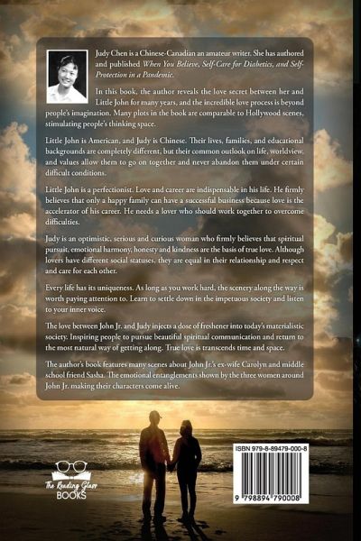 Synopsis: In this book, the author reveals the love secret between her and Little John for many years, and the incredible love process is beyond people's imagination. Many plots in the book are comparable to Hollywood scenes, stimulating people's thinking space. Little John is American, and Judy is Chinese. Their lives, families, and educational backgrounds are completely different, but their common outlook on life, worldview, and values allow them to go on together and never abandon them under certain difficult conditions. Little John is a perfectionist. Love and career are indispensable in his life. He firmly believes that only a happy family can have a successful business because love is the accelerator of his career. He needs a lover who should work together to overcome difficulties. Judy is an optimistic, serious and curious woman who firmly believes that spiritual pursuit, emotional harmony, honesty and kindness are the basis of true love. Although lovers have different social statuses, they are equal in their relationship and respect and care for each other. Every life has its uniqueness. As long as you work hard, the scenery along the way is worth paying attention to. Learn to settle down in the impetuous society and listen to your inner voice. The love between John Jr and Judy injects a dose of freshener into today's materialistic society. Inspiring people to pursue beautiful spiritual communication and return to the most natural way of getting along. True love transcends time and space. The author's book features many scenes about John Jr.'s ex-wife Carolyn and middle school friend Sasha. The emotional entanglements shown by the three women around John Jr. make their characters come alive. Autobiography: Judy Chen is an amateur Chinese-Canadian writer. She has authored and published When You Believe, Self-Care for Diabetics, and Self-Protection in a Pandemic.