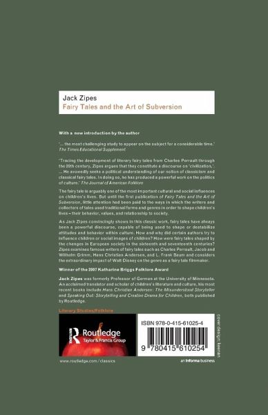 As Jack Zipes convincingly shows in this classic work, fairy tales have always been a powerful discourse, capable of being used to shape or destabilize attitudes and behavior within culture. How and why did certain authors try to influence children or social images of children?