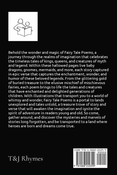 Behold the wonder and magic of Fairy Tale Poems, a journey through the realms of imagination that celebrates the timeless tales of kings, queens, and creatures of myth and legend. Within these hallowed pages live baby dragons, gnomes, mermaids, and more, each story captured in epic verse that captures the enchantment, wonder, and humor of these beloved legends. From the glittering gold of buried treasure to the elusive mischief of mischievous fairies, each poem brings to life the tales and creatures that have enchanted and delighted generations of children. With illustrations that transport you to a world of whimsy and wonder, Fairy Tale Poems is a portal to lands unexplored and tales untold, a treasure trove of story and verse that will awaken the imagination and ignite the spirit of adventure in readers young and old. So come, gather around, and discover the mysteries and marvels of stories long forgotten, and be transported to a land where heroes are born and dreams come true.