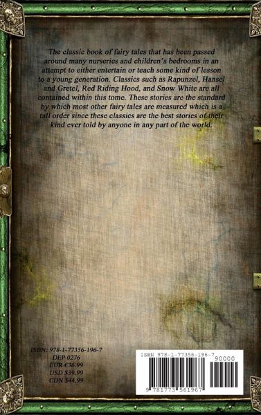 The classic book of fairy tales that has been passed around many nurseries and children's bedrooms in an attempt to either entertain or teach some kind of lesson to a young generation. Classics such as Rapunzel, Hansel and Gretel, Red Riding Hood, and Snow White are all contained within this tome. These stories are the standard by which most other fairy tales are measured which is a tall order since these classics are the best stories of their kind ever told by anyone in any part of the world.