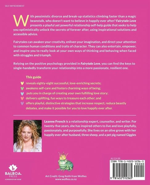 With pessimistic divorce and break-up statistics climbing faster than a magic beanstalk, who doesn't want to believe in happily ever after? Fairytale Love presents a playful yet powerful relationship self-help guide that seeks to help you optimistically unlock the secrets of forever after, using inspirational solutions and accessible advice. Fairytales can awaken your creativity, enliven your imagination, and direct your attention to common human conditions and traits of character. They can also entertain, empower, and inspire you to really look at your own ways of thinking and behaving when faced with struggles and triumph. Relying on the positive psychology provided in Fairytale Love, you can find the keys to single-handedly transform your relationship into a more passionate, resilient one. This guide - reveals eighty-eight successful, love-enriching secrets; - awakens self-care and fosters charming ways of being; - puts you in charge of creating your own fulfilling love story; - delivers uplifting, fun ways to treasure each other; and - offers playful, distinctive strategies that increase respect, reduce beastly debates, and make it possible for you to love happily ever after.