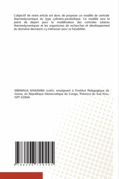 L'objectif de notre article est donc de proposer un modèle de centrale thermodynamique du type cylindro-parabolique. Ce modèle sera le point de départ pour la modélisation des centrales solaires thermodynamiques et les organismes de recherches et développement du domaine devraient s'y intéresser pour sa faisabilité.