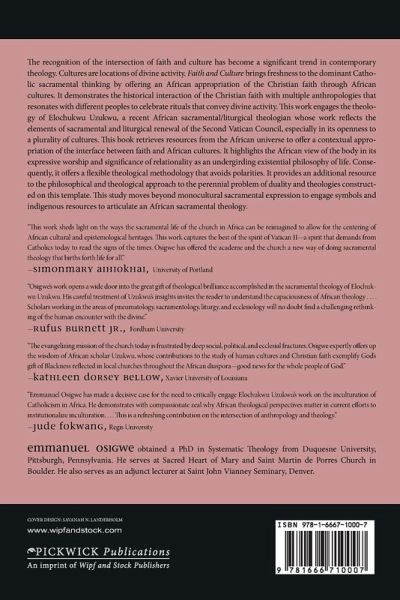 The recognition of the intersection of faith and culture has become a significant trend in contemporary theology. Cultures are locations of divine activity. The Sacramental Theology of Elochukwu Uzukwu in Light of Vatican II and Its Application in African Context brings freshness to the dominant Catholic sacramental thinking by offering an African appropriation of the Christian faith through African cultures. It demonstrates the historical interaction of the Christian faith with multiple anthropologies that resonates with different peoples to celebrate rituals that convey divine activity. This work engages the theology of Elochukwu Uzukwu, a recent African sacramental/liturgical theologian whose work reflects the elements of sacramental and liturgical renewal of the Second Vatican Council, especially in its openness to a plurality of cultures. This book retrieves resources from the African universe to offer a contextual appropriation of the interface between faith and African cultures. It highlights the African view of the body in its expressive worship and significance of relationality as an undergirding existential philosophy of life. Consequently, it offers a flexible theological methodology that avoids polarities. It provides an additional resource to the philosophical and theological approach to the perennial problem of duality and theologies constructed on this template. This study moves beyond monocultural sacramental expression to engage symbols and indigenous resources to articulate an African sacramental theology.