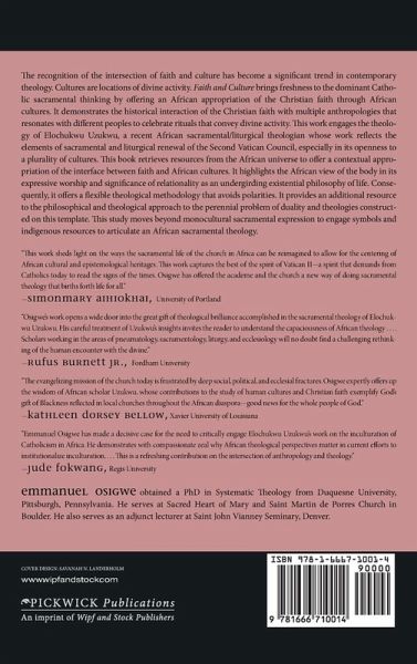 The recognition of the intersection of faith and culture has become a significant trend in contemporary theology. Cultures are locations of divine activity. The Sacramental Theology of Elochukwu Uzukwu in Light of Vatican II and Its Application in African Context brings freshness to the dominant Catholic sacramental thinking by offering an African appropriation of the Christian faith through African cultures. It demonstrates the historical interaction of the Christian faith with multiple anthropologies that resonates with different peoples to celebrate rituals that convey divine activity. This work engages the theology of Elochukwu Uzukwu, a recent African sacramental/liturgical theologian whose work reflects the elements of sacramental and liturgical renewal of the Second Vatican Council, especially in its openness to a plurality of cultures. This book retrieves resources from the African universe to offer a contextual appropriation of the interface between faith and African cultures. It highlights the African view of the body in its expressive worship and significance of relationality as an undergirding existential philosophy of life. Consequently, it offers a flexible theological methodology that avoids polarities. It provides an additional resource to the philosophical and theological approach to the perennial problem of duality and theologies constructed on this template. This study moves beyond monocultural sacramental expression to engage symbols and indigenous resources to articulate an African sacramental theology.