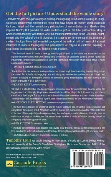 Get the full picture! Understand the whole story! Faith and Modern Thought is a jargon-busting and engaging introduction providing an imaginative and creative way into the great minds that have forged the modern world, especially Kant and Hegel and the revolutionary philosophies of existentialism and Marxism they inspired. Tim Hull provides the wider intellectual picture, the fuller philosophical story in which modern theology was forged. After an engaging introduction to the European Enlightenment and the cultural crisis it triggered, the stage is set to understand the essence of modern theology. From that essential background the radical faith of many of the most influential of modern theologians and philosophers of religion is explored, exposing a deep-rooted indebtedness to the Enlightenment tradition.