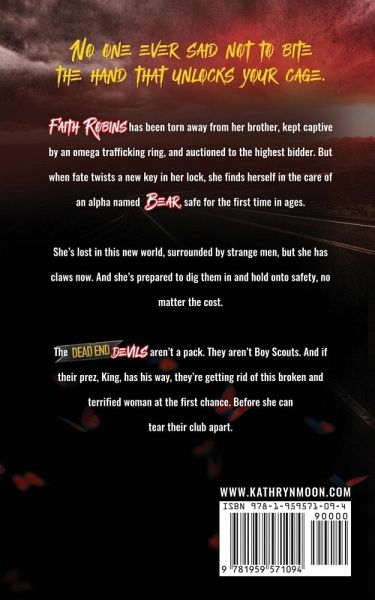 No one ever said not to bite the hand that unlocks your cage. Faith Robins has been torn away from her brother, kept captive by an omega trafficking ring, and auctioned to the highest bidder. But when fate twists a new key in her lock, she finds herself in the care of an alpha named Bear, safe for the first time in ages. She's lost in this new world, surrounded by strange men, but she has claws now. And she's prepared to dig them in and hold onto safety, no matter the cost. The Dead End Devils aren't a pack. They aren't Boy Scouts. And if their prez, King, has his way, they're getting rid of this broken and terrified woman at the first chance. Before she can tear their club apart.