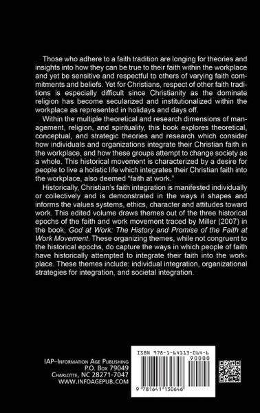 Those who adhere to a faith tradition are longing for theories and insights into how they can be true to their faith within the workplace and yet be sensitive and respectful to others of varying faith commitments and beliefs. Yet for Christians, respect of other faith traditions is especially difficult since Christianity as the dominate religion has become secularized and institutionalized within the workplace as represented in holidays and days off. Within the multiple theoretical and research dimensions of management, religion and spirituality, this book explores theoretical, conceptual and strategic theories and research which consider how individuals and organizations integrate their Christian faith in the workplace, and how these groups attempt to change society as a whole. This historical movement is characterized by a desire for people to live a holistic life which integrates their Christian faith into the workplace, also deemed "faith at work". Historically, Christian's faith integration is manifested individually or collectively and is demonstrated in the ways it shapes and informs the values systems, ethics, character and attitudes towards work. This edited volume draws themes out of the three historical epochs of the faith and work movement traced by Miller (2007) in the book, God at work: The history and promise of the faith at work movement. These organizing themes, while not congruent to the historical epochs, do capture the ways in which people of faith have historically attempted to integrate their faith into the workplace. These themes include: Individual integration, organizational strategies for integration and societal integration.