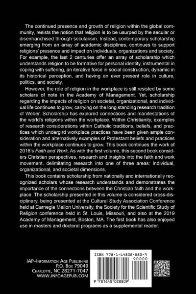 The continued presence and growth of religion within the global community, resists the notion that religion is to be usurped by the secular or disenfranchised through secularism. Instead, contemporary scholarship emerging from an array of academic disciplines, continues to support religions' presence and impact on individuals, organizations and society. For example, the last two centuries offer an array of scholarship which understands religion to be formative for personal identity, instrumental in coping with suffering, an iterative force in social construction, dynamic in its historical perception and having an ever present role in culture, politics and society. However, the role of religion in the workplace is still resisted by some scholars of note in the Academy of Management. Yet, scholarship regarding the impacts of religion on societal, organizational and individual life continues to grow, carrying on the long standing research tradition of Weber. Scholarship has explored connections and manifestations of the world's religions within the workplace. Within Christianity, examples of research considerations within Catholic traditions, beliefs and practices which undergird workplace practices have been given ample consideration and alternatively examples of Protestant beliefs and practices within the workplace continues to grow. This second volume continues the work of the first volume of Faith and Work, Christian Perspectives, published in 2018. As with the first volume, this second volume considers Christian perspectives, research and insights into the faith and work movement, delimitating research into one of three areas: Individual, organizational and societal dimensions. This book contains scholarship from nationally and internationally recognized scholars whose research understands and demonstrates the importance of the connections between the Christian faith and the workplace. The scholarship presented in this volume is considered cross disciplinary, as was the first volume which was presented at the Cultural Study Association (CSA) Conference held at Carnegie Mellon University, the Society for the Scientific Study of Religion (SSSR) conference held in St. Louis, Missouri and also at the 2019 Academy of Management, Boston, MA. The first book has also enjoyed use in masters and doctoral programs as a supplemental reader.
