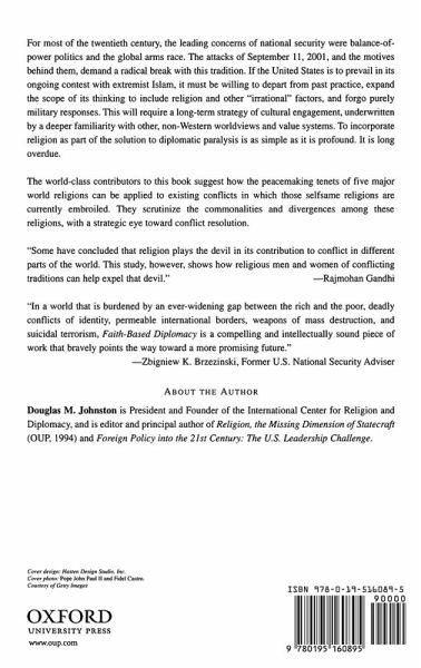 The continued exclusion of religious considerations from the diplomatic enterprise contributes to the inability to communicate across the divide that currently separates the religious world of Islam and the quasi-seculr world of the West. The same holds true of other hotspots around the globe where religion plays a key role in ongoing conflicts. This book suggests a way to bridge the gap by means of a "faith-based diplomacy" that blends religious insights and influence with the practice of international politics. This activity, say the authors, cannot be controlled by governments - their political agendas would compromise the integrity of such initiatives - but it is something they can reinforce and build upon to good effect in the right circumstances. After presenting this argument, the book goes on to offer close analyses of five of the world's most intractable conflicts (Sri Lanka, Bosnia, Sudan, Kashmir, and Israel/Palestine) in which the authors attempt to establish guideposts that can help point the way for faith-based intervention in these troubled places. Faith-Based Diplomacy will function as a sequel to Douglas Johnston's groundbreaking collection Religion, the Mission Dimension of Statecraft, which pioneered the study of the role of the religion in conflict resolution.