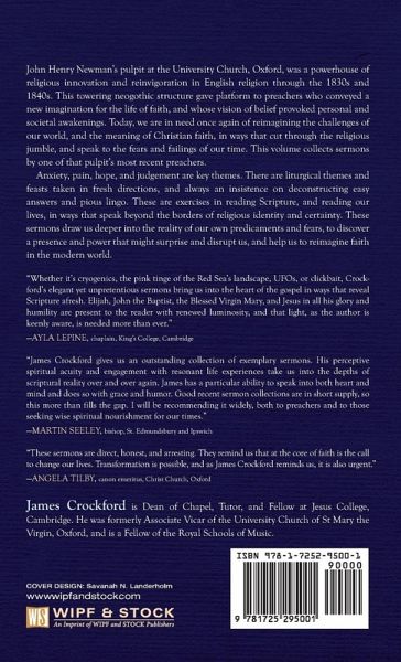 John Henry Newman's pulpit at St Mary's, Oxford, was a powerhouse of religious innovation and reinvigoration in English religion through the 1830s and 1840s. This towering neogothic structure gave platform to preachers who conveyed a new imagination for the life of faith, and whose vision of belief provoked personal and societal awakenings. Today, we are in need once again of reimagining the challenges of our world, and the meaning of Christian faith, in ways that cut through the religious jumble, and speak to the fears and failings of our time. This volume collects sermons by one of that pulpit's most recent preachers. Anxiety, pain, hope, and judgement are key themes. There are liturgical themes and feasts taken in fresh directions, and always an insistence on deconstructing easy answers and pious lingo. These are exercises in reading Scripture, and reading our lives, in ways that speak beyond the borders of religious identity and certainty. These sermons draw us deeper into the reality of our own predicaments and fears, to discover a presence and power that might surprise and disrupt us, and help us to reimagine faith in the modern world.