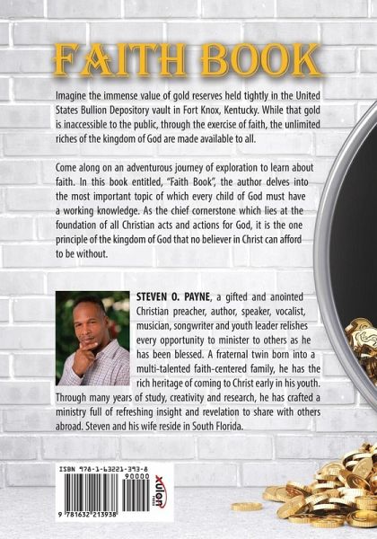 Imagine the immense value of gold reserves held tightly in the United States Bullion Depository vault in Fort Knox, Kentucky. While that gold is inaccessible to the public, through the exercise of faith, the unlimited riches of the kingdom of God are made available to all. Come along on an adventurous journey of exploration to learn about faith. In this book entitled, "Faith Book", the author delves into the most important topic of which every child of God must have a working knowledge. As the chief cornerstone which lies at the foundation of all Christian acts and actions for God, it is the one principle of the kingdom of God that no believer in Christ can afford to be without. STEVEN O. PAYNE, a gifted and anointed Christian preacher, author, speaker, vocalist, musician, songwriter and youth leader relishes every opportunity to minister to others as he has been blessed. A fraternal twin born into a multi-talented faith-centered family, he has the rich heritage of coming to Christ early in his youth. Through many years of study, creativity and research, he has crafted a ministry full of refreshing insight and revelation to share with others abroad. Steven and his wife reside in South Florida.