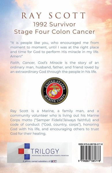 RAY SCOTT 1992 Survivor Stage Four Colon Cancer "It is people like you, who encouraged me from moment to moment, until I was at the right place and time for God to perform His miracle in my life. Amen!" Faith, Cancer, God's Miracle is the story of an ordinary man, husband, father, and friend loved by an extraordinary God through the people in his life.