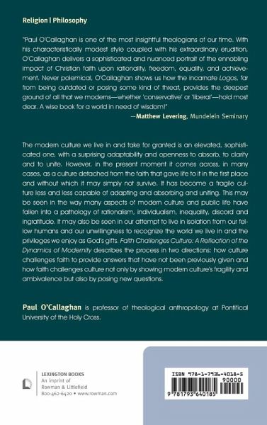 Faith Challenges Culture provides a description of the way modern culture challenges Christian faith and theology. It also shows that since modern faith is to an important extent the result of Christian reflection on the world and the human condition, faith is likewise meant to challenge and renew culture.