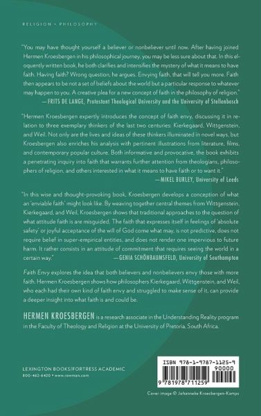 Faith Envy explores the idea that both believers and nonbelievers envy those with more faith. Hermen Kroesbergen shows how philosophers Kierkegaard, Wittgenstein, and Weil, who each had their own kind of faith envy, can serve as guides to this phenomenon and the contemporary concept of faith.