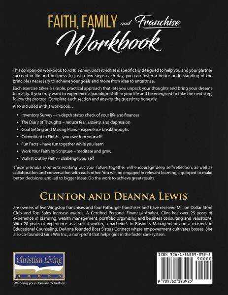 This companion workbook to "Faith, Family, and Franchise" is specifically designed to help you and your partner succeed in life and business. In just a few steps each day, you can foster a better understanding of the principles necessary to achieve your goals and move from idea to enterprise. Each exercise takes a simple, practical approach that helps you unpack your thoughts and bring your dreams to reality. If you truly want to experience a paradigm shift in your life and be energized to take the next step, follow the process. Complete each section and answer the questions honestly. Also included in this workbook… Inventory Survey – in-depth status check of your life and finances The Diary of Thoughts – reduce fear, anxiety, and depression Goal Setting and Making Plans – experience breakthroughs Committed to Finish – you owe it to yourself! Fun Facts – have fun together while you learn Work Your Faith by Scripture – meditate and grow Walk It Out by Faith – challenge yourself These precious moments working out your future together will encourage deep self-reflection, as well as collaboration and conversation with each other. You will be engaged in relevant learning, equipped to make better decisions, and led to bigger ideas. Do the work to achieve great results.