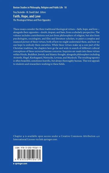 1. Introduction: Virtue and Vice.- I: Faith and Doubt.- 2. Faith (and Doubt?) Among the Virtues.- 3. Restoring Faith, Curing Doubt: Krsna's Instruction in the Bhagavad Gita.- 4. Faith, Doubt, and the Buddhist Path of Enlightenment.- 5. Kierkegaard on Faith, Doubt, and Uncertainty.- 6. Wilfred Cantwell Smith: Scholar, Mentor, and Humanist.- II: Hope and Despair.- 7. Dante's Commedia: from Despair to Hope to Glory.- 8. Radical Hope, Despair and Time: Responses to Nietzsche.- 9. Hope but not Optimism: The Kantian Mind at the End of All Things.- III: Love and Hate.- 10. How to 'Love Thy Neighbor': Lessons from G.W.F. Hegel on Conflict and Reconciliation.- 11. Making Lovers: Emmanuel Levinas and Iris Murdoch on Moral Formation.- 12. Empathy and its Critics.- 13. What Muslim Scholars Talk About When They Talk About Love.- 14. Bhakti and Accidental Grace: Hate as Love in the Hindu Tradition.- 15. Obedience and Love in Christian Ethics.- 16. The Happiness of Promise: Ferdinand Holler andAlexander Nehamas on Love and Care.
