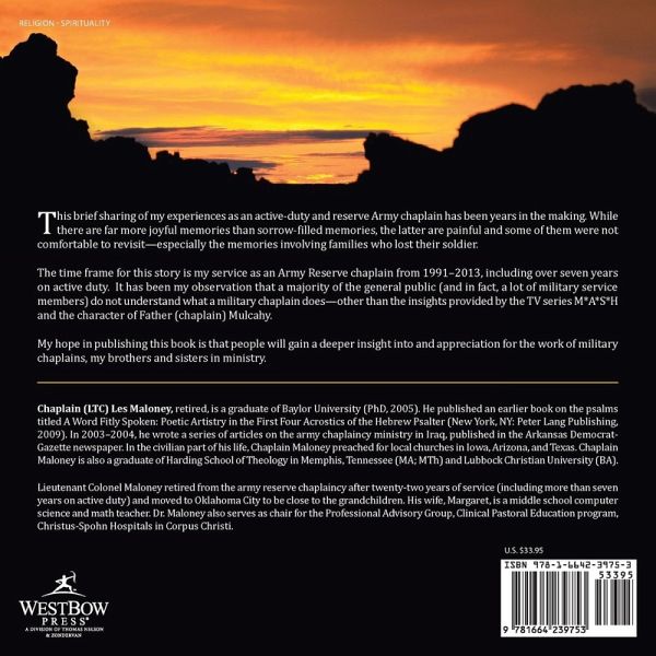 This brief sharing of my experiences as an active-duty and reserve Army chaplain has been years in the making. While there are far more joyful memories than sorrow-filled memories, the latter are painful and some of them were not comfortable to revisit-especially the memories involving families who lost their soldier. The time frame for this story is my service as an Army Reserve chaplain from 1991-2013, including over seven years on active duty. It has been my observation that a majority of the general public (and in fact, a lot of military service members) do not understand what a military chaplain does-other than the insights provided by the TV series M*A*S*H and the character of Father (chaplain) Mulcahy. My hope in publishing this book is that people will gain a deeper insight into and appreciation for the work of military chaplains, my brothers and sisters in ministry.