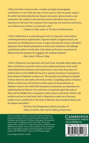"Faith in Moderation is an unusually good work of comparative social analysis, combining theoretical sophistication, impressive depth of original research, and important new thinking about an issue of urgent international concern. Schwedler's arguments about Islamist participation in democratic institutions will challenge conventional wisdom on both sides of the debate, and become a touchstone for debates about the prospects for engaging with moderate Islamism." Marc Lynch, Williams College