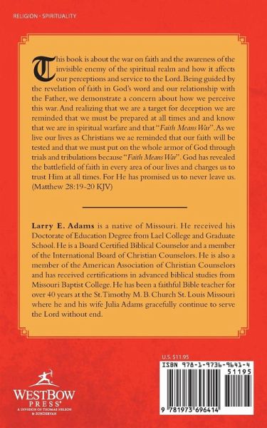This book is about the war on faith and the awareness of the invisible enemy of the spiritual realm and how it affects our perceptions and service to the Lord. Being guided by the revelation of faith in God's word and our relationship with the Father, we demonstrate a concern about how we perceive this war. And realizing that we are a target for deception we are reminded that we must be prepared at all times and and know that we are in spiritual warfare and that "Faith Means War". As we live our lives as Christians we ae reminded that our faith will be tested and that we must put on the whole armor of God through trials and tribulations because "Faith Means War". God has revealed the battlefield of faith in every area of our lives and charges us to trust Him at all times. For He has promised us to never leave us. (Matthew 28:19-20 KJV)