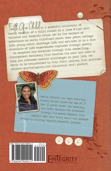 Faith Of A Child is a powerful collection of Poetic Memoirs of a child raised in a home filled with violence and domestic abuse. Set in the context of reflections on early childhood years, teen years, college life, young adult, marriage life, and mid-life, it is a rich chronicle of life experiences captured through poetry. Be inspired and enriched through this compelling, transparent testimony that touches the soul and aims to help you overcome similar challenges in your life. Get ready to be transformed by this Faith journey that provides answers psychologists and clinicians can’t predict.