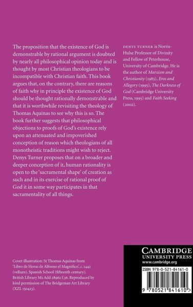 The proposition that the existence of God is demonstrable by rational argument is doubted by nearly all philosophical opinion today and is thought by most Christian theologians to be incompatible with Christian faith. This book argues that, on the contrary, there are reasons of faith why in principle the existence of God should be thought rationally demonstrable and that it is worthwhile revisiting the theology of Thomas Aquinas to see why this is so. The book further suggests that philosophical objections to proofs of God's existence rely upon an attenuated and impoverished conception of reason which theologians of all monotheistic traditions might wish to reject. Denys Turner proposes that on a broader and deeper conception of it, human rationality is open to the 'sacramental shape' of creation as such and in its exercise of rational proof of God it in some way participates in that sacramentality of all things.