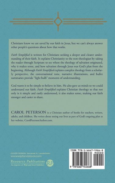 Christians know we are saved by our faith in Jesus, but we can't always answer other people's questions about how that works. Faith Simplified is written for Christians seeking a deeper and clearer understanding of their faith. It explains Christianity to the non-theologian by taking the reader through Scripture to see where the theology of salvation originated, why it makes sense, and how salvation through Jesus was God's plan from the beginning. Although Faith Simplified explains complex theology from a scholarly perspective, the conversational tone, narrative illustrations, and bullet summaries provide ""light bulb"" moments of understanding. God wants it to be simple to believe in him. He also gave us minds so we could understand our faith. Faith Simplified explains Christian theology so that not only is it simple and easily understood, it also makes sense, making our faith stronger and easier to share.