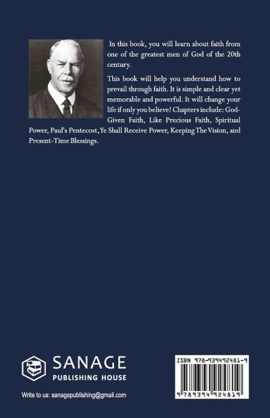 In this book, you will learn about faith from one of the greatest men of God of the 20th century. This book will help you understand how to prevail through faith. It is simple and clear yet memorable and powerful. It will change your life if only you believe! Chapters include: God-Given Faith, Like Precious Faith, Spiritual Power, Paul's Pentecost, Ye Shall Receive Power, Keeping The Vision, and Present-Time Blessings.