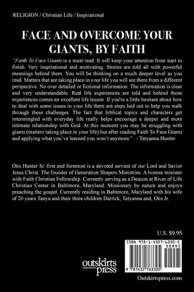 Faith To Face Giants. Face And Overcome Your Giants, By Faith Faith To Face Giants is a must read. It will keep your attention from start to finish. Very inspirational and motivating. Stories are told, all with powerful meanings behind them. You will be thinking on a much deeper level as you read. Matters that are taking place in your life you will see them from a different perspective. No over detailed, fictional information. The information is clear and very understandable. Real life experiences are told and behind those experiences comes an excellent life lesson. If you're a little hesitant about how to deal with some issues in your life, there are steps laid out to help you walk through these challenges. The fact that biblical topics and characters get intermingled with everyday life really helps encourage a deeper and more intimate relationship with God. At this moment you may be struggling with giants (matters taking place in your life) but after reading Faith To Face Giants and applying what you've learned you won't anymore.